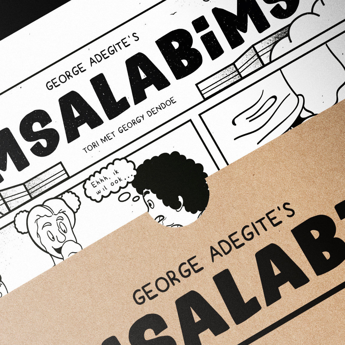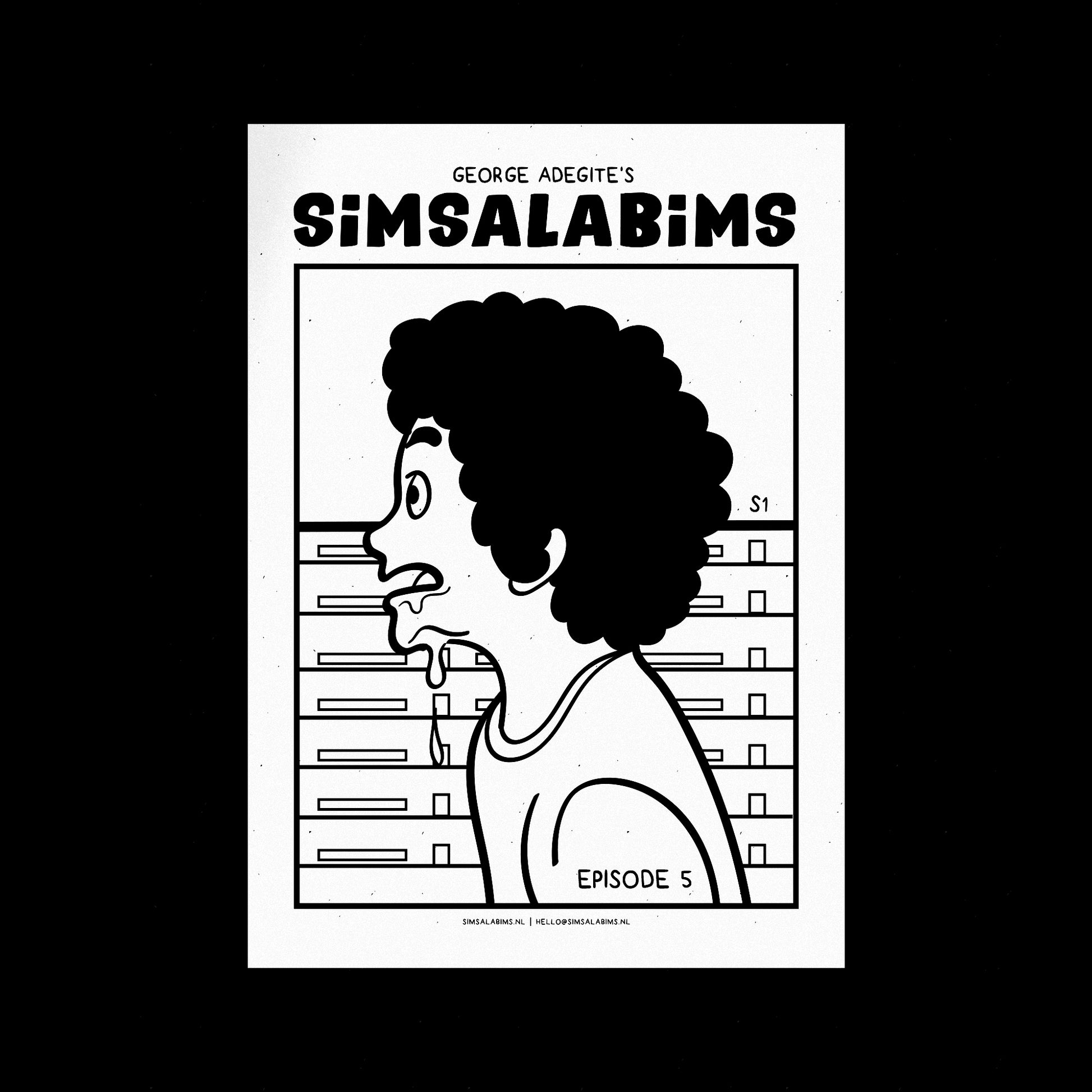 Eén SiMSALABiMS episode met zwart-wit illustraties van George Adegite op stevig A4 papier.