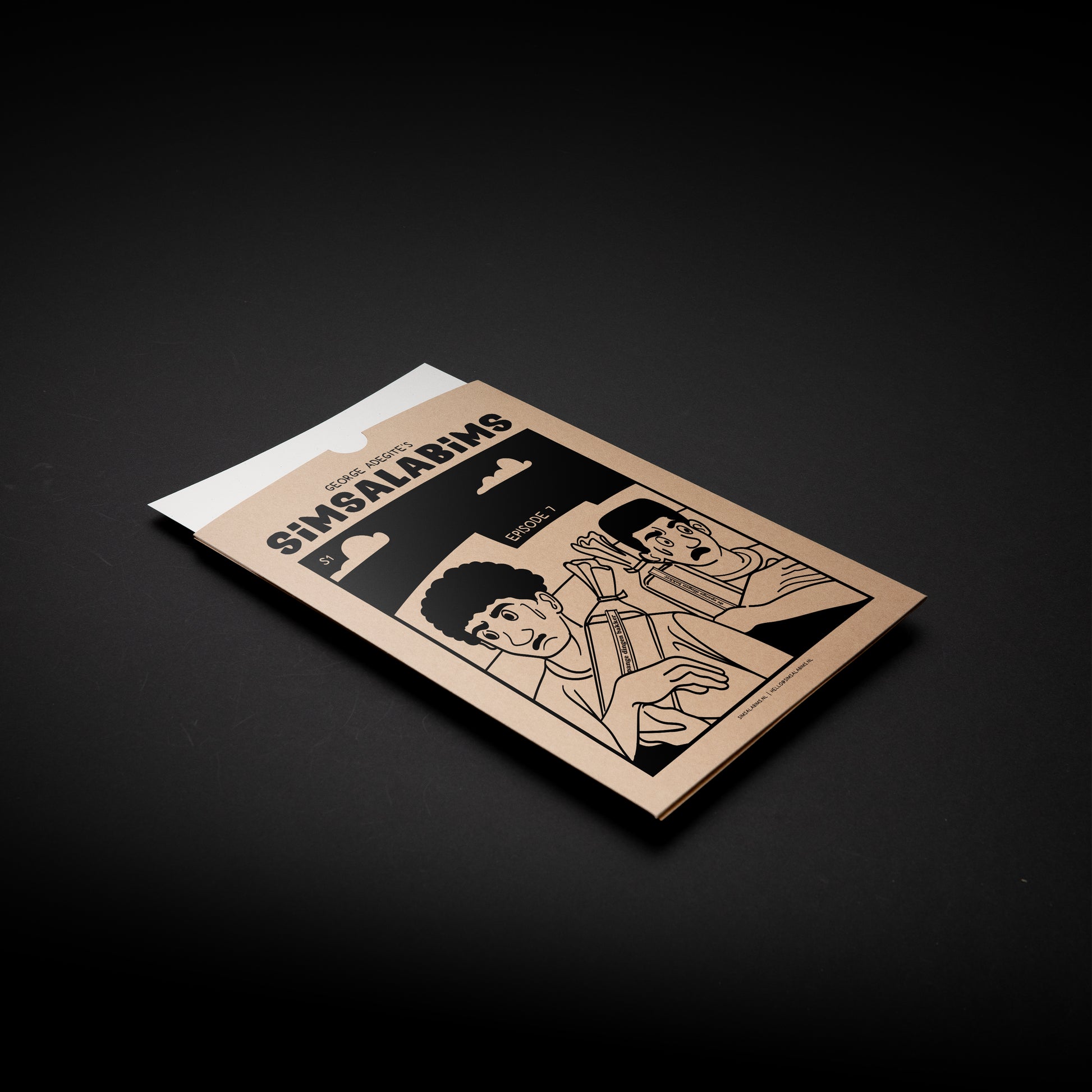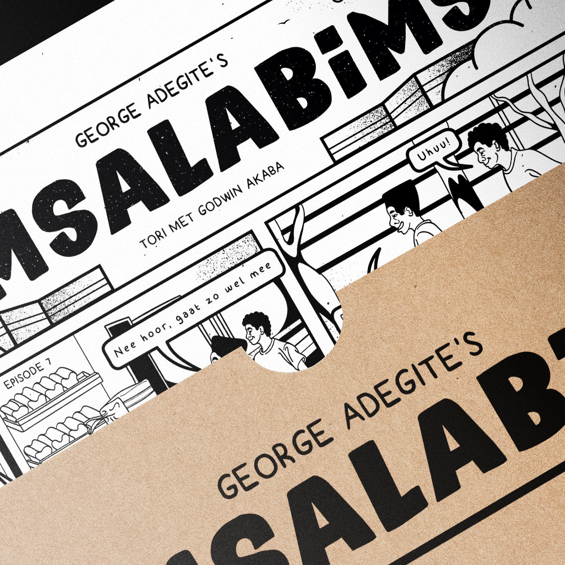 Eén SiMSALABiMS episode met zwart-wit illustraties van George Adegite op stevig A4 papier.