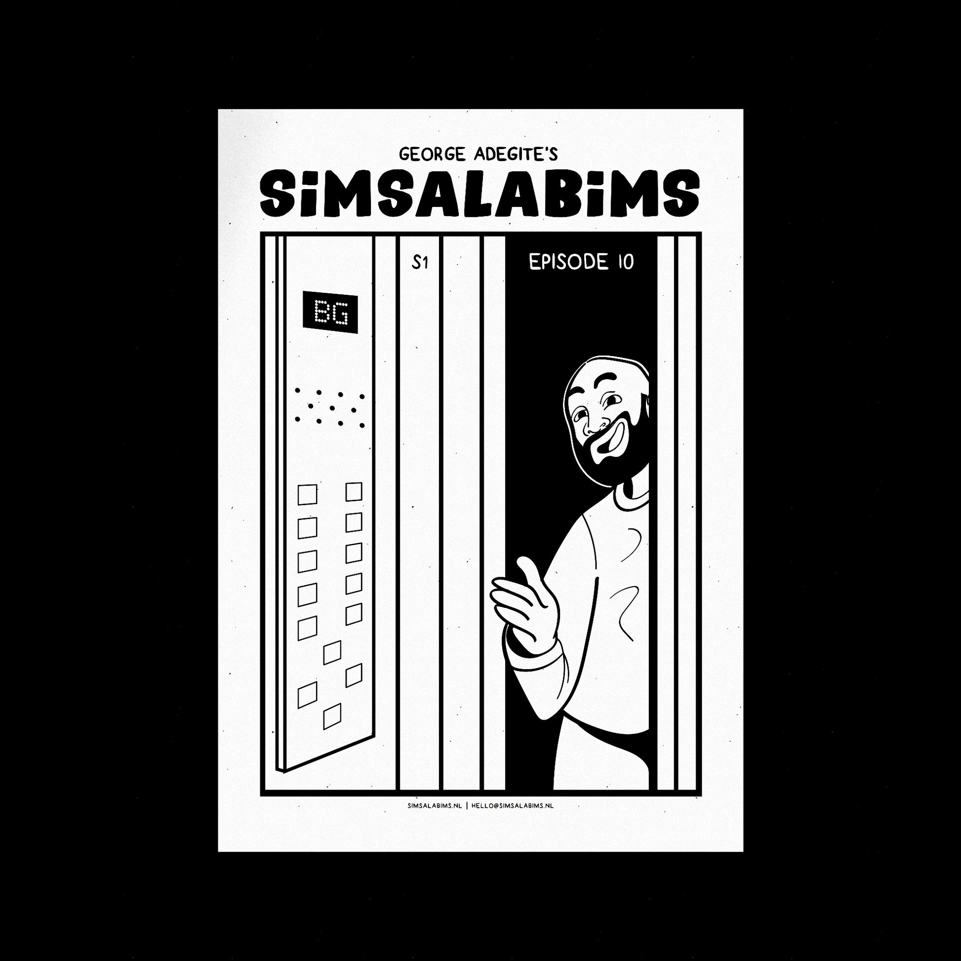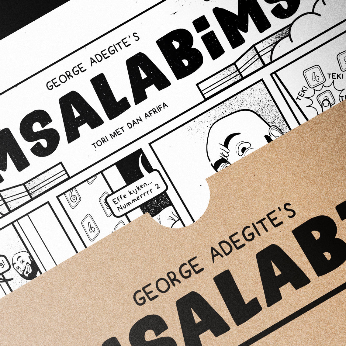 Eén SiMSALABiMS episode met zwart-wit illustraties van George Adegite op stevig A4 papier.