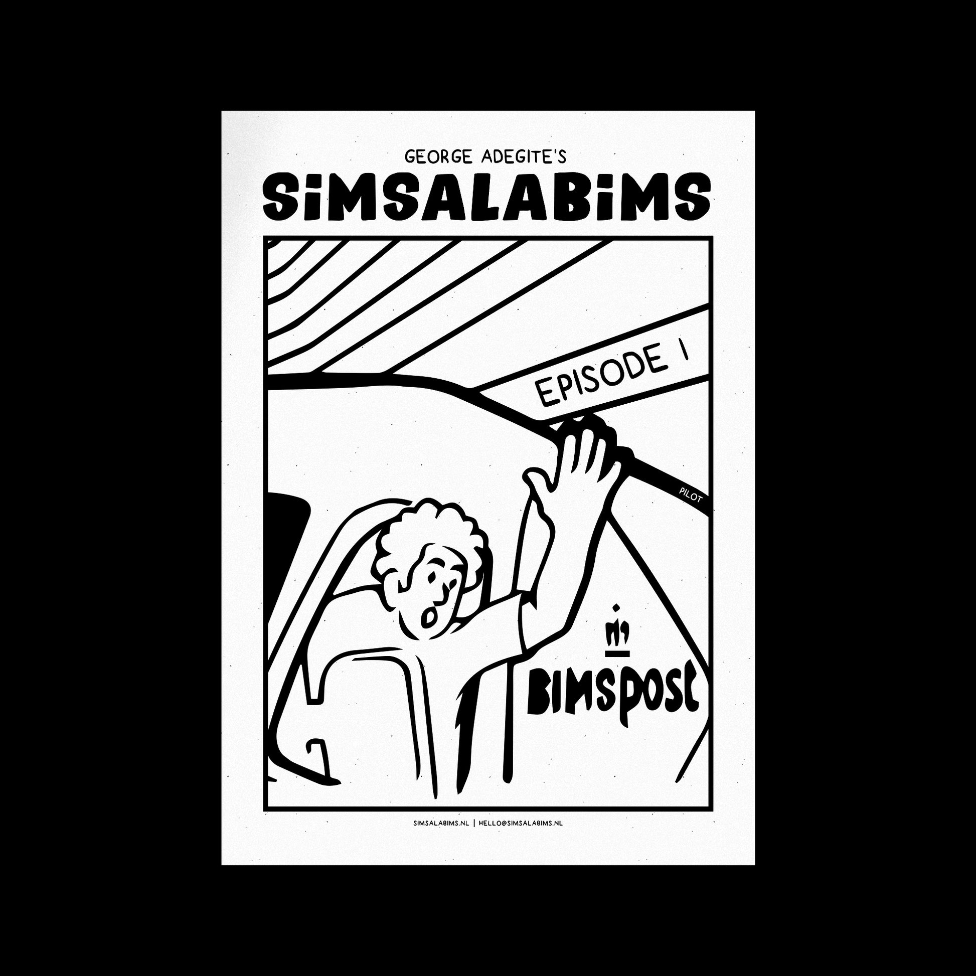 Eén SiMSALABiMS episode met zwart-wit illustraties van George Adegite op stevig A4 papier.