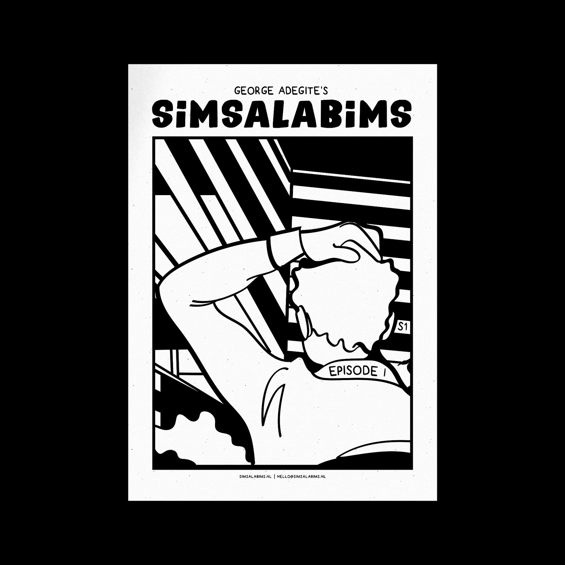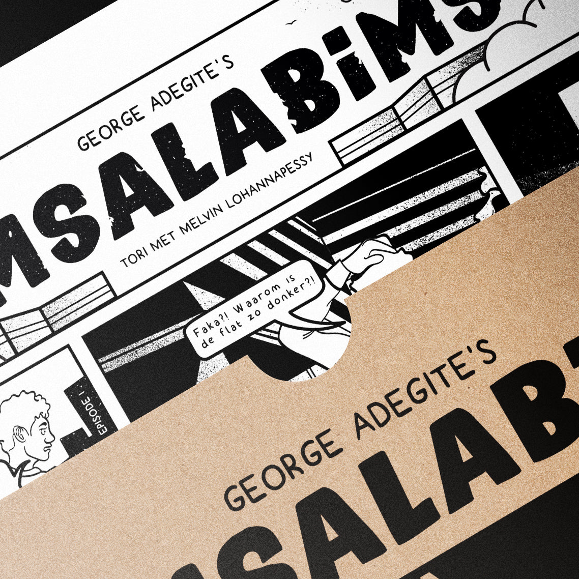 Eén SiMSALABiMS episode met zwart-wit illustraties van George Adegite op stevig A4 papier.