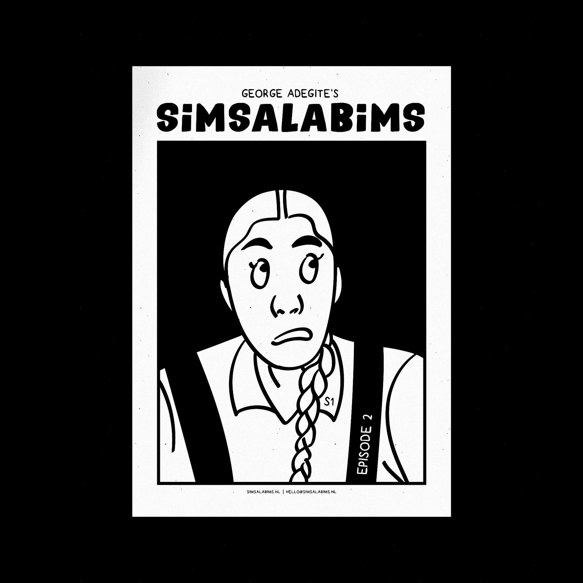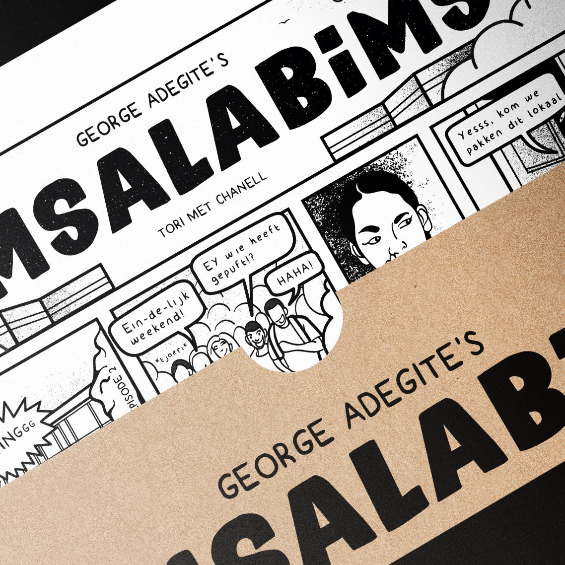 Eén SiMSALABiMS episode met zwart-wit illustraties van George Adegite op stevig A4 papier.